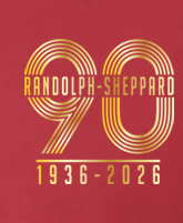On the left chest, The gold emblem highlights a  large,  bold  art deco style “90” with elegant line detailing, paired with  “ Randolph-Sheppard”  in the center of the logo,  and the years 1936–2026 at the bottom of this beautiful logo- marking  the significant  90th anniversary with understated sophistication.