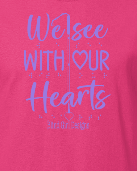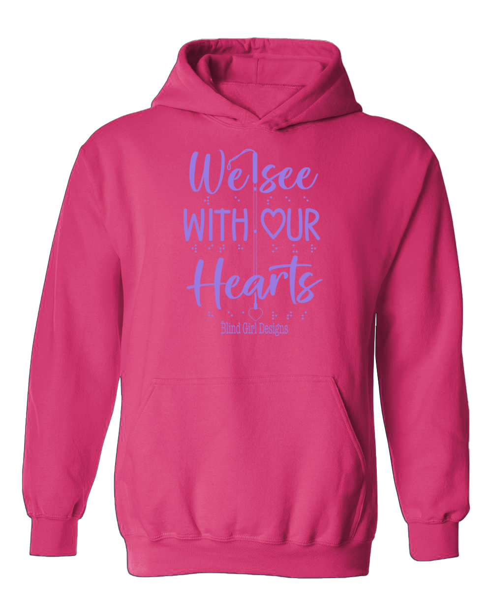 3D We See With Our Hearts with Purple Braille Hoodie - Pink