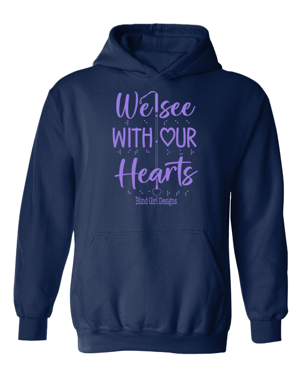 3D We See With Our Hearts with Purple Braille Hoodie - Navy