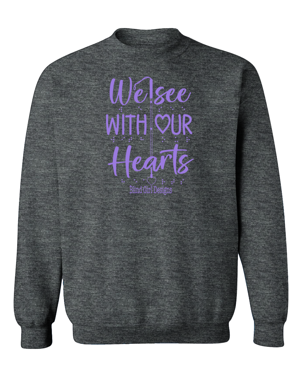 3D We See With Our Hearts with Purple Braille Sweatshirts - Heather gray