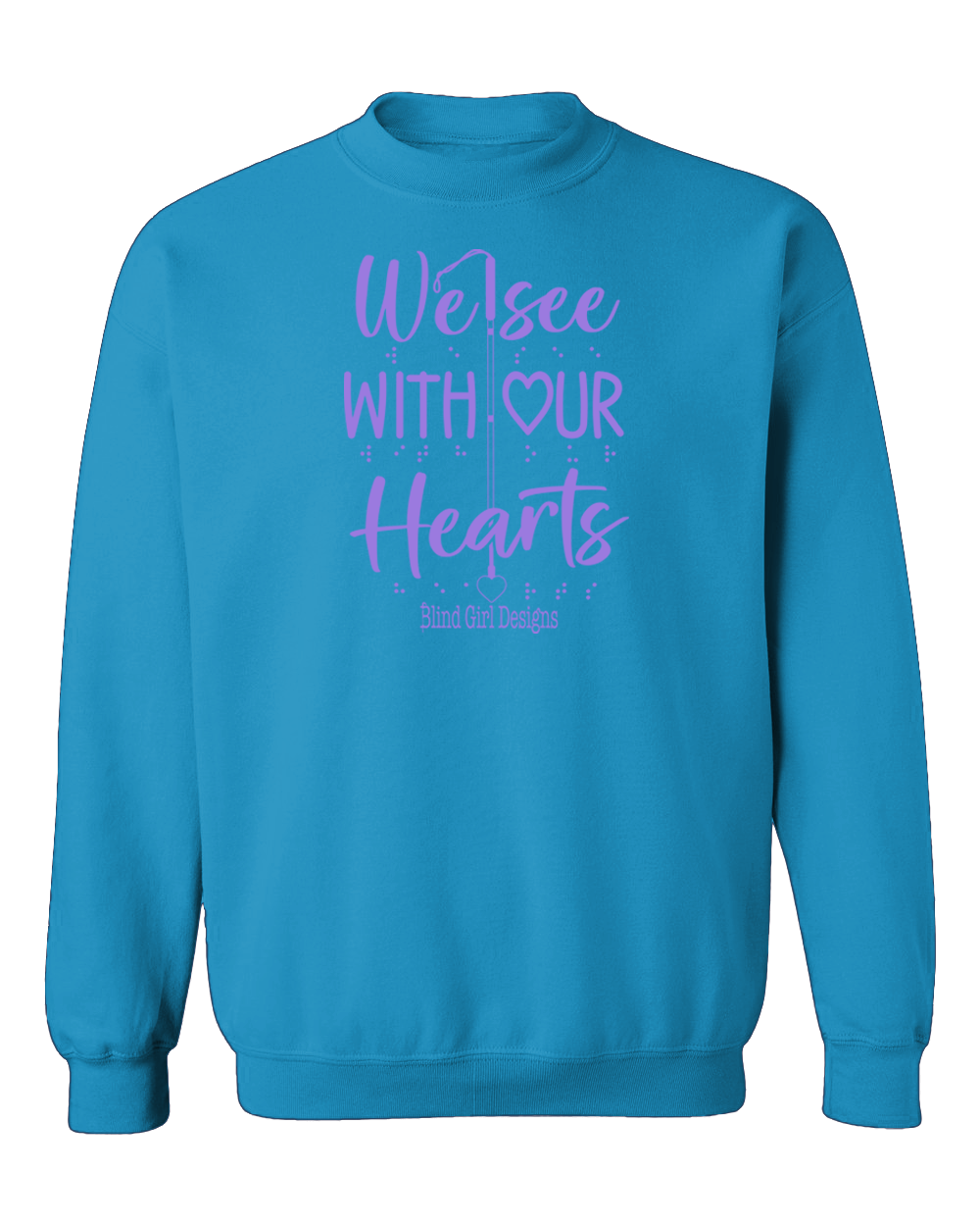 3D We See With Our Hearts with Purple Braille Sweatshirts - Sapphire Blue