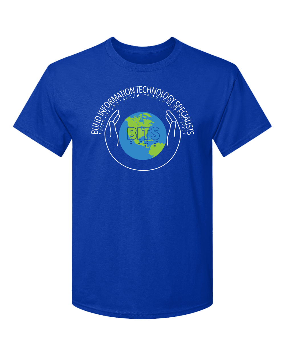 Support the Blind Information Technology Specialists! This is a black classic crewneck t-shirt.